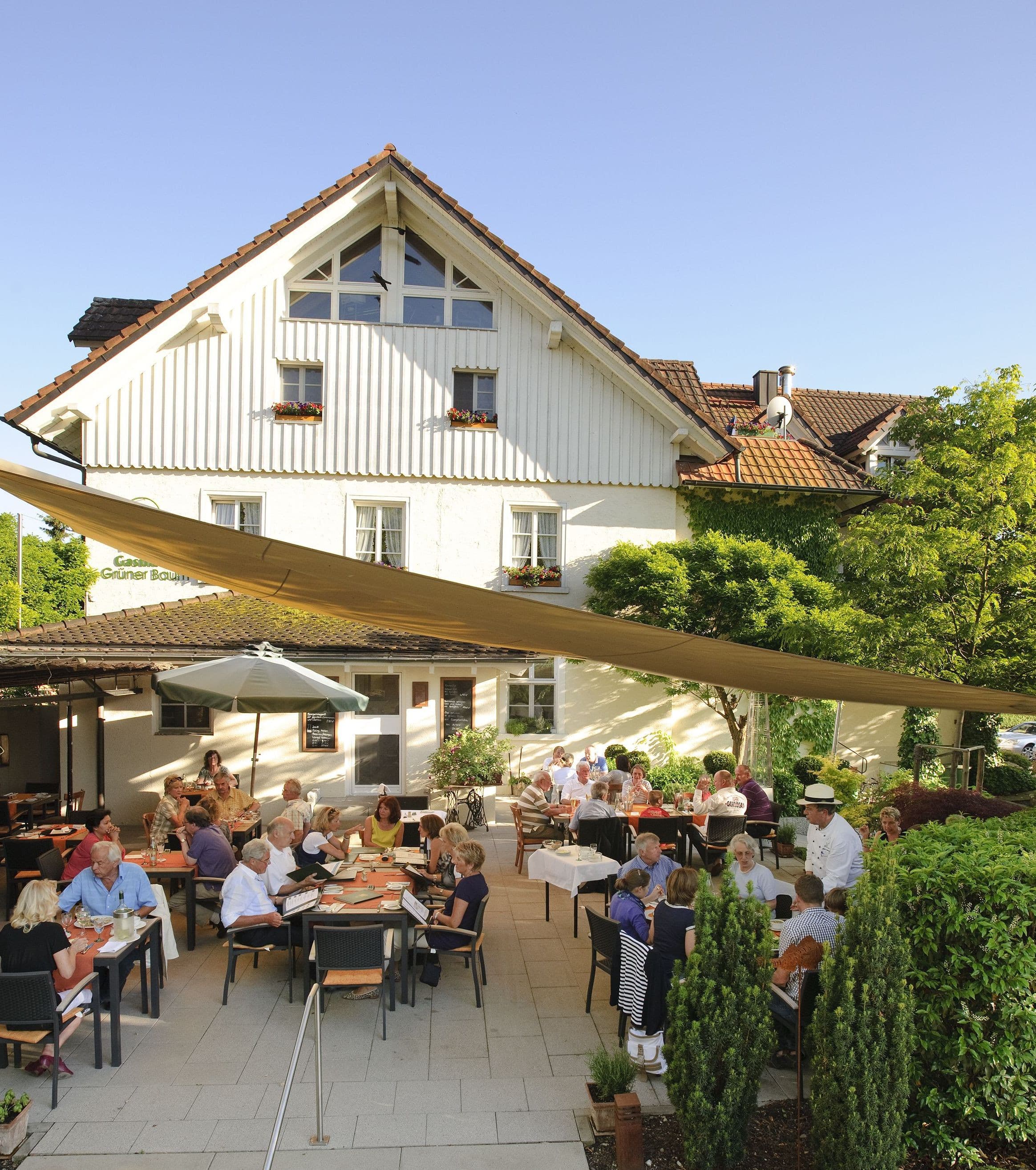 Essen, radeln, essen, radeln – erst der stete Wechsel macht dieses Menü zum perfekten Genuss. Der Weg führt weiter ins Hinterland, durch Wälder, an Feldern vorbei, durch noch winzigere Dörfer – und auf einmal sogar ordentlich bergauf. Ganz oben dann, am Horner Wasserturm, der Lohn für die Anstrengung: Das ist wirklich der beste Rundblick über den westlichen Bodensee, bis zur Halbinsel Mettnau, zur Insel Reichenau und zum thurgauischen Seerücken.